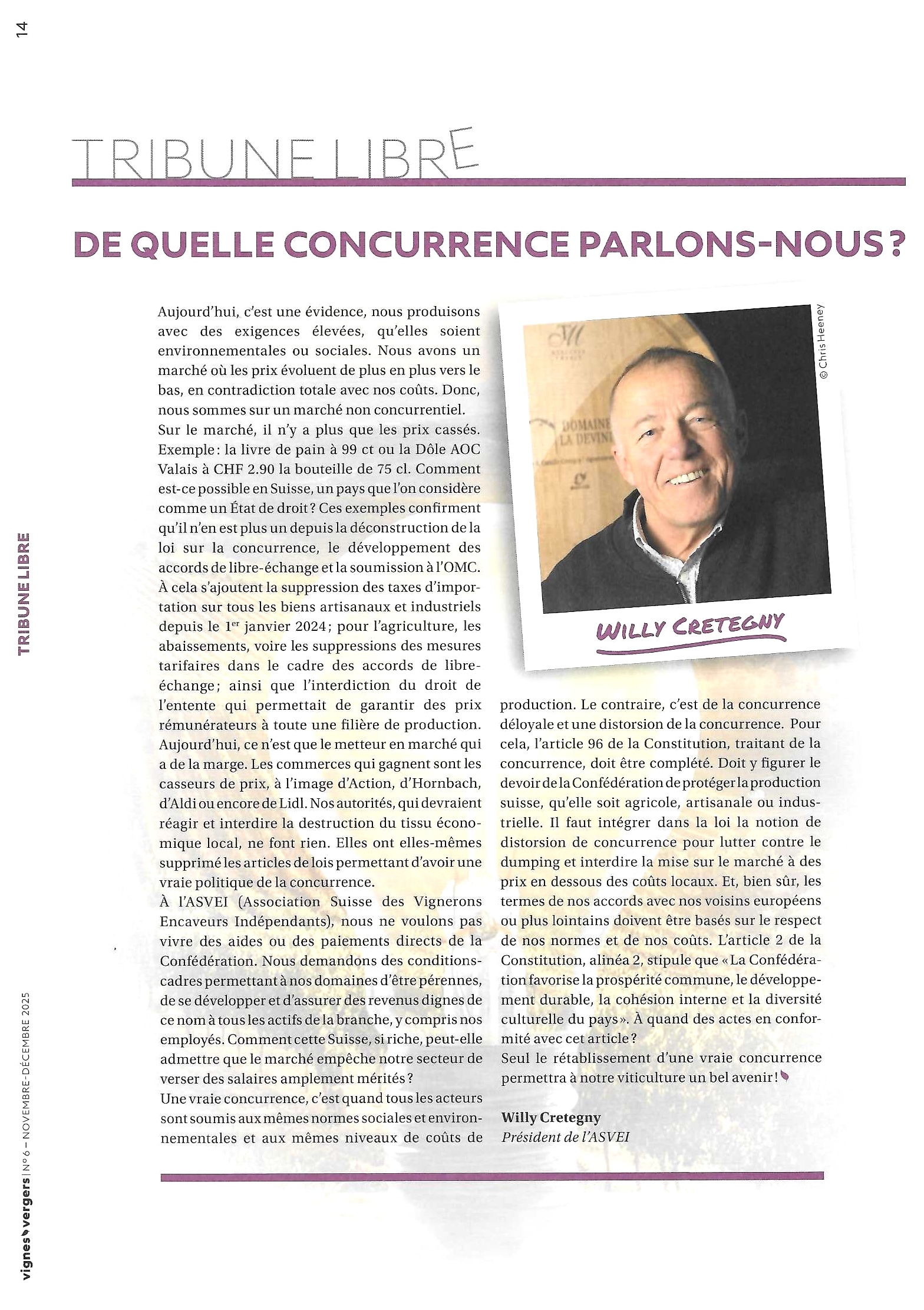 imageTribune Libre parue dans Vignes & Vergers n°6 - 19.11.2025